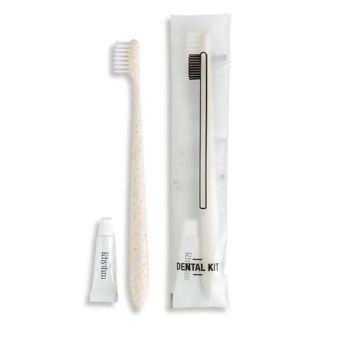 სასტუმროს ერთჯერადი კბილის ჯაგრისი დამზადებულია ხორბლის ღეროს ბოჭკოსგან, რაც 20%-ით ამცირებს პლასმასის მოხმარებას.